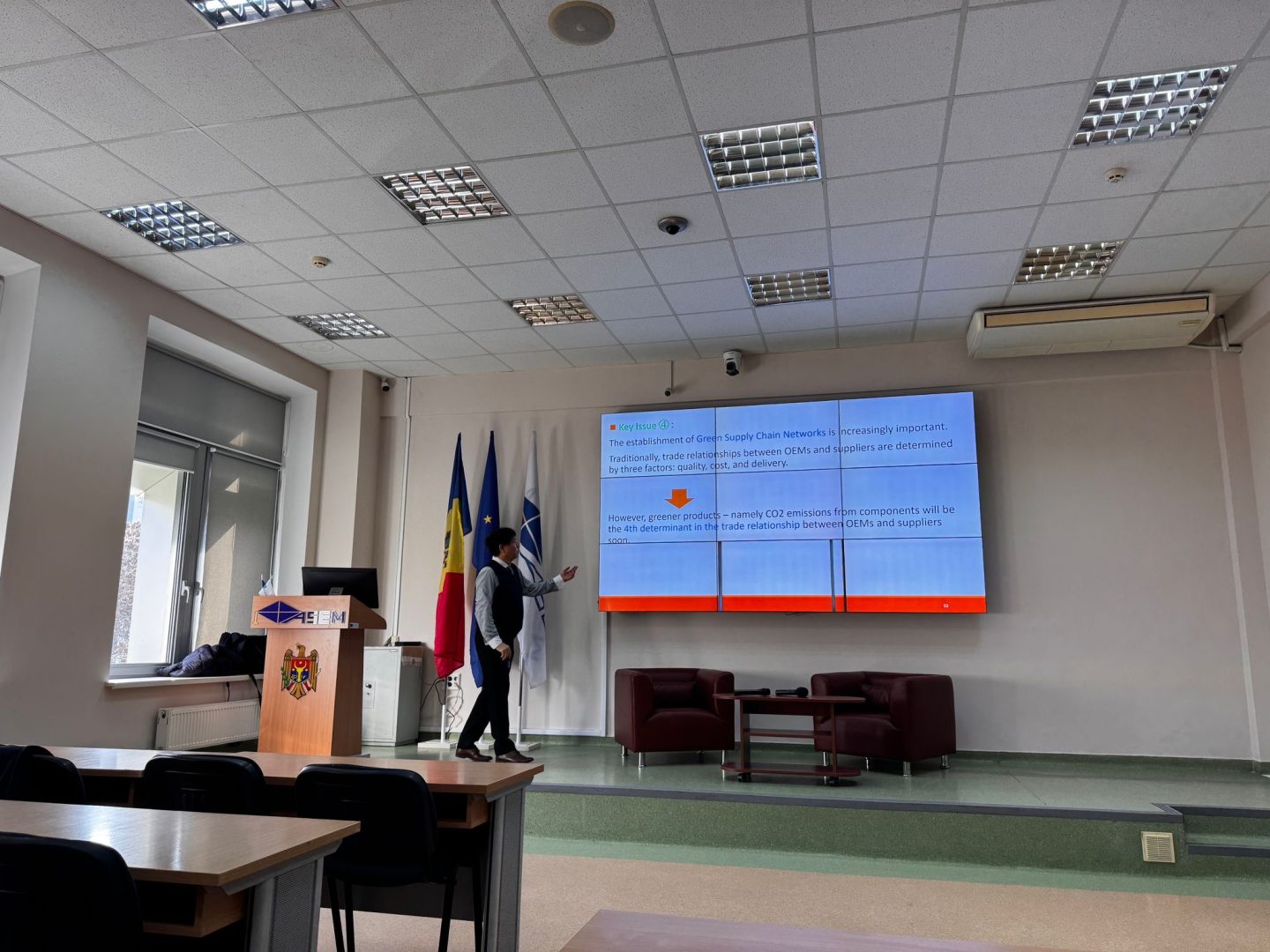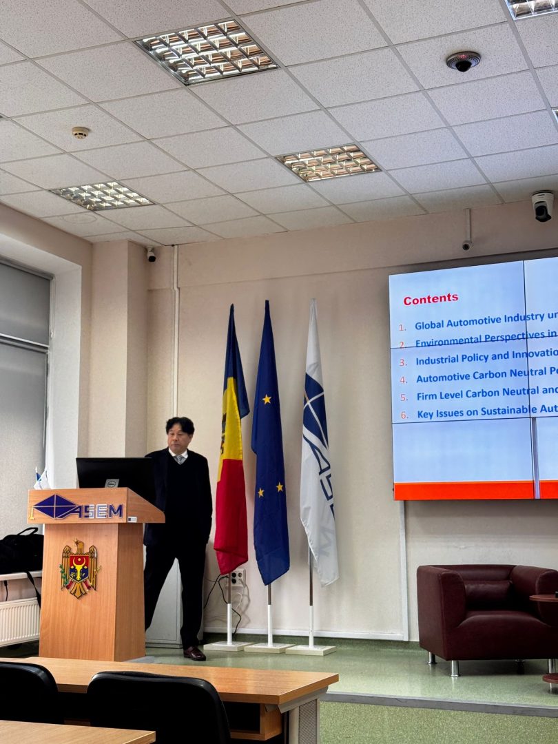 Un moment central al vizitei l-a constituit prezentarea susținută de Profesorul Kaoru NATSUDA (Ph.D), de la Ritsumeikan Asia Pacific University, Japonia, intitulată „Japanese Automotive Industry under Carbon Neutrality: A Comparison with Europe”.