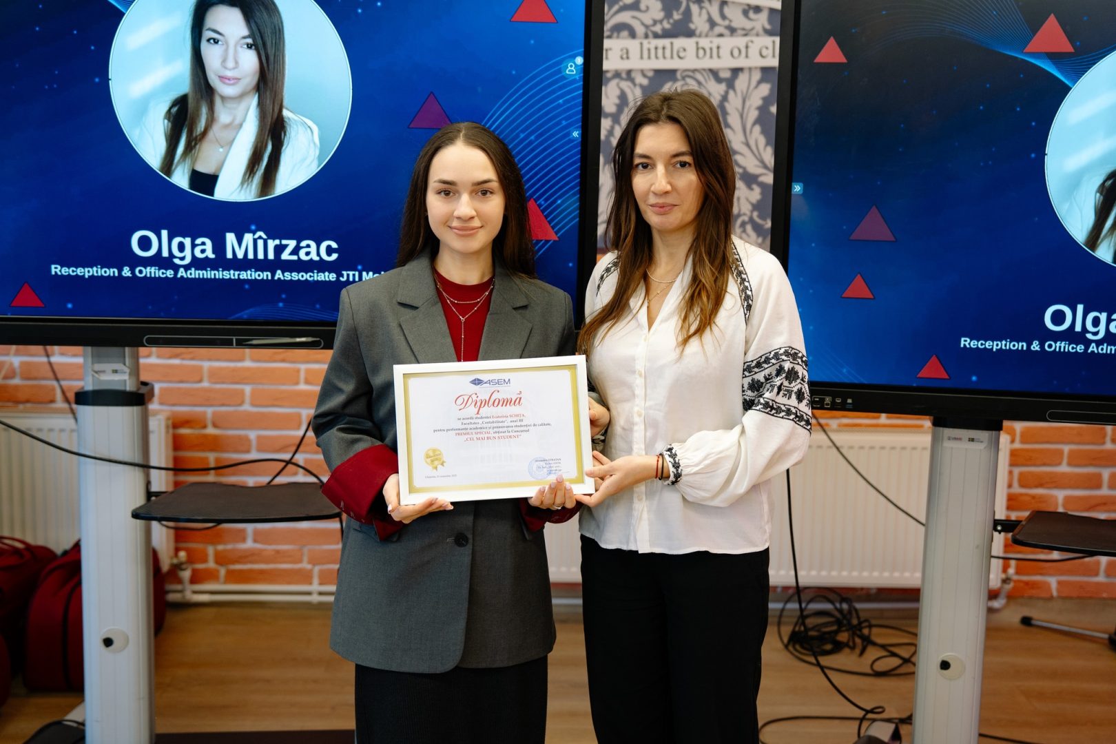 Pe Locul I s-au plasat Antonela CARAUȘ, Facultatea Contabilitate, programul de studii Contabilitate și Livia DOMBROVSCHI, Facultatea Relații Economice Internaționale, programul de studii Economie Mondială și Relații Economice Internaționale.