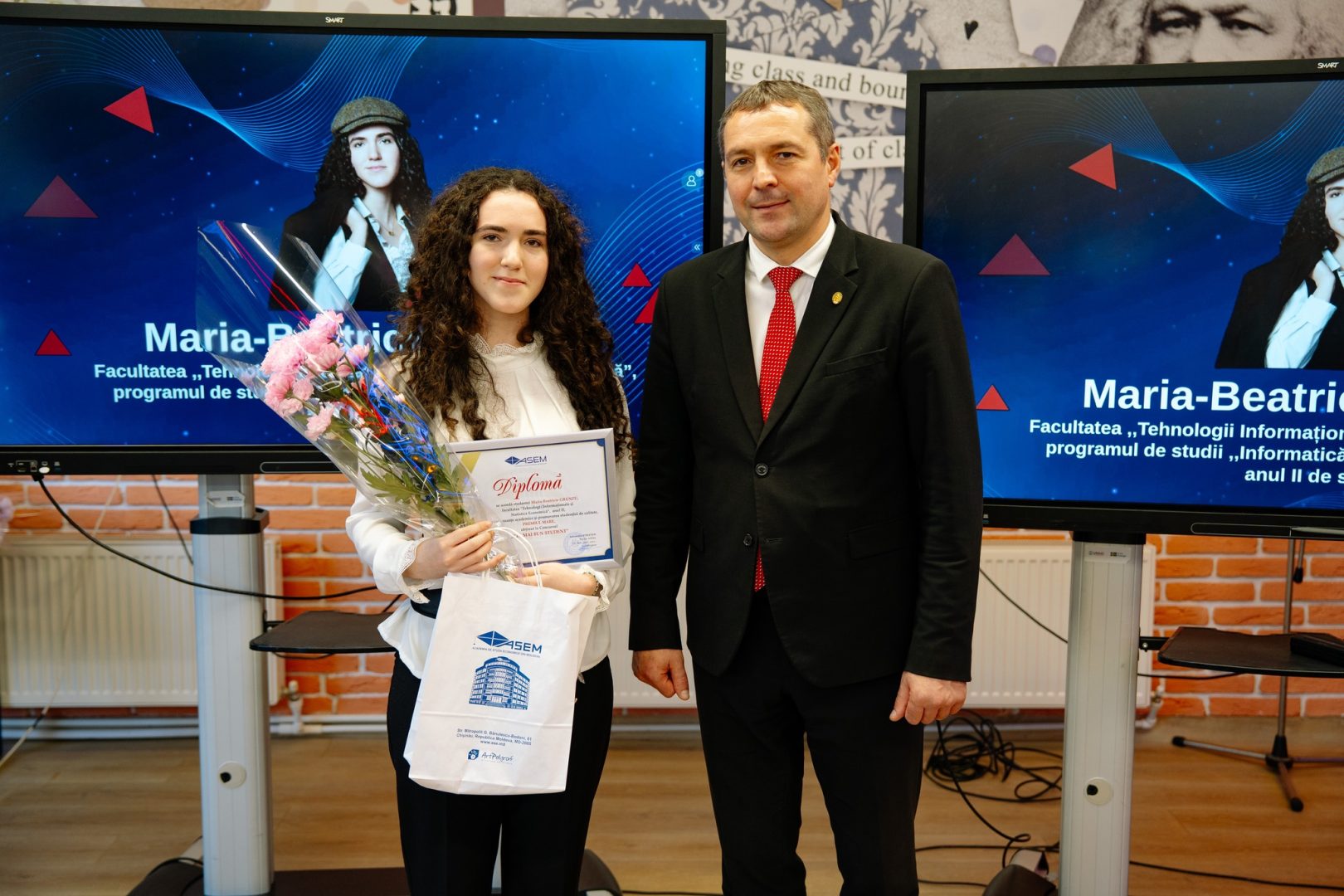 Premiul Mare a fost oferit studentei Maria-Beatricie GRUNZU, Facultatea Tehnologii Informaționale și Statistică Economică, programul de studii Informatică și Cibernetică Economică.