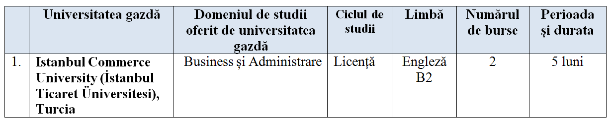 Se lansează concursul de selecție în cadrul Programul ERASMUS+ a studenților Ciclului I, Licență, pentru participarea la mobilitatea academică la Istanbul Commerce University (İstanbul Ticaret Üniversitesi), Turcia, pentru anul de studii 2025 – 2026, semestrul II.