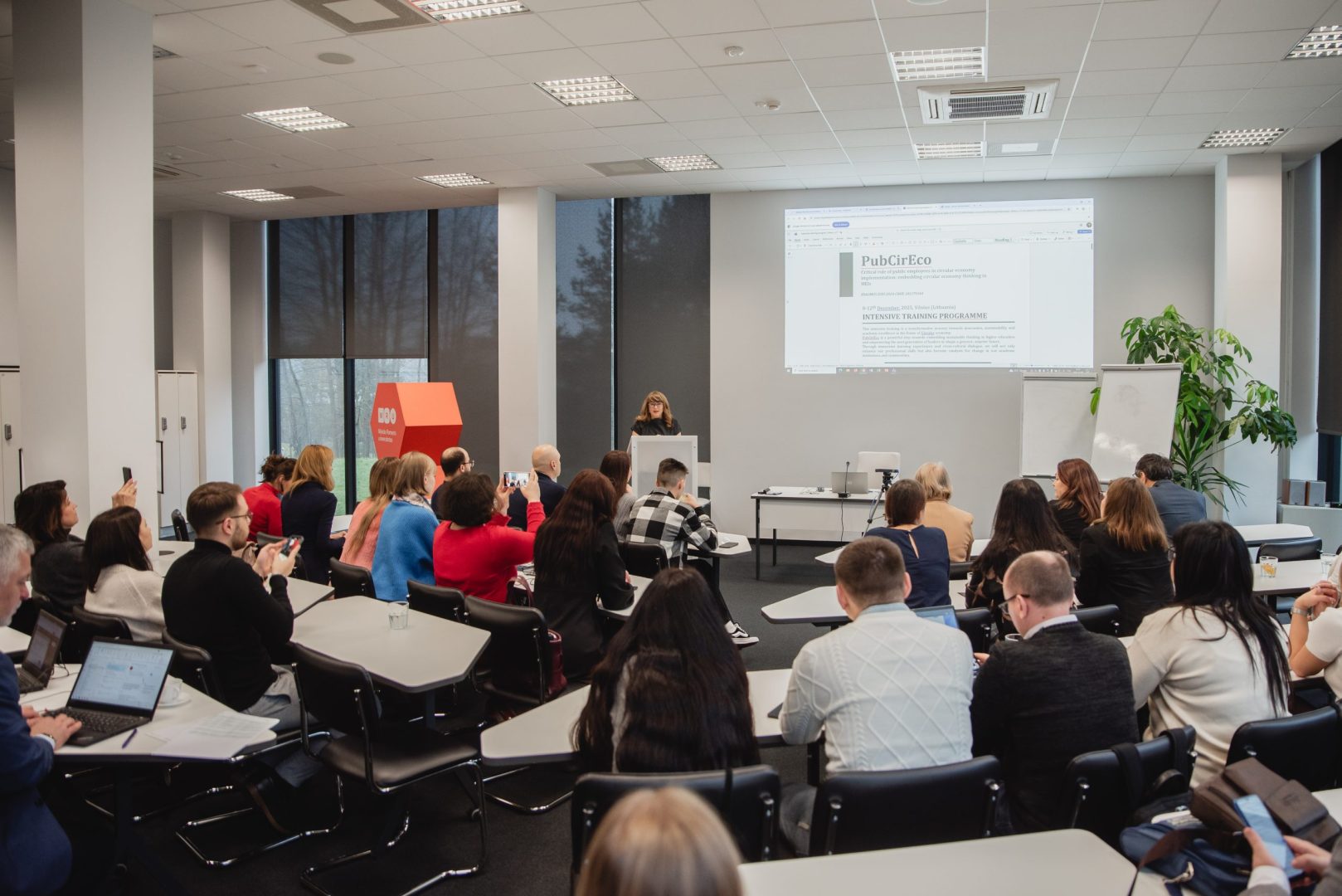 Trainingul intensiv s-a desfășurat în cadrul proiectului „Rolul angajaților din sectorul public în implementarea principiilor economiei circulare: integrarea gândirii circulare în instituțiile de învățământ superior” – PubCirEco, ERASMUS-EDU-2024-CBHE 101179344 care are drept obiectiv consolidarea competențelor profesionale ale studenților și specialiștilor ce activează sau vor activa în sectorul public și privat, în concordanță cu prioritățile Pactului Verde European.