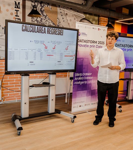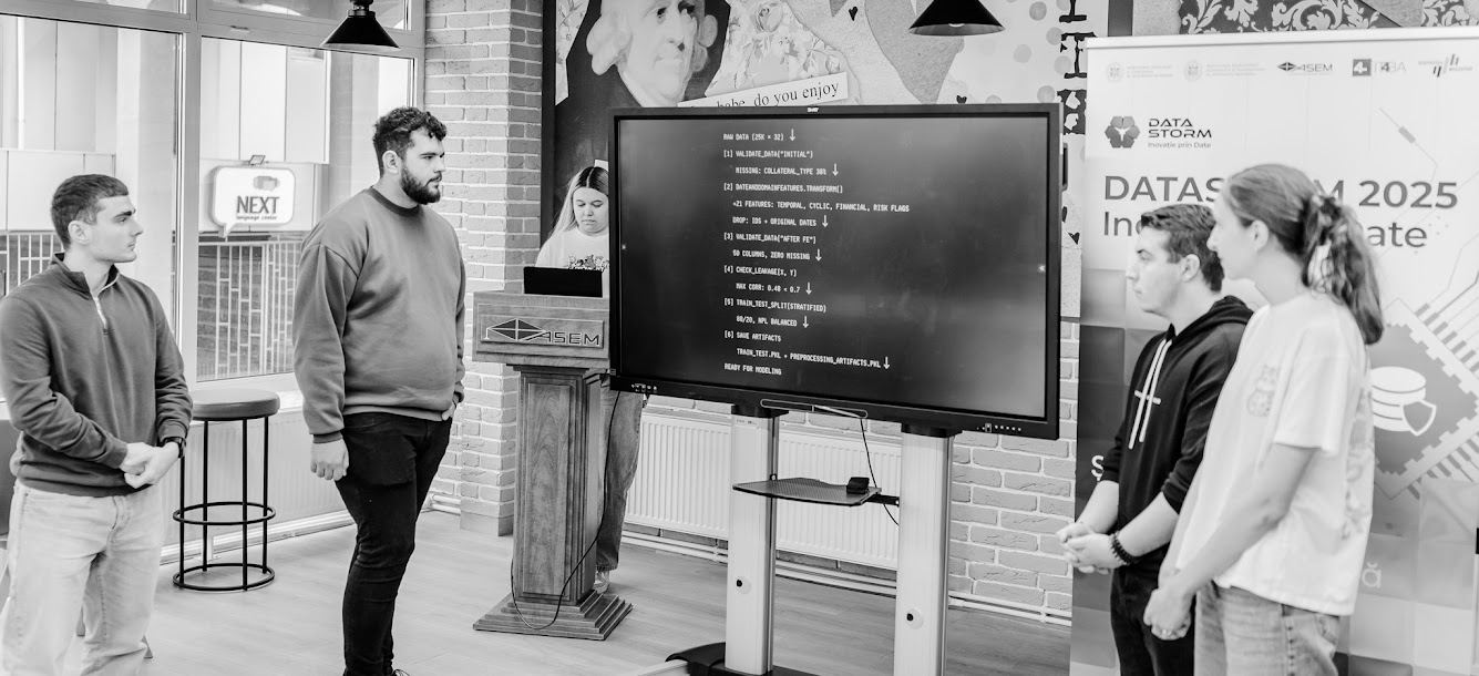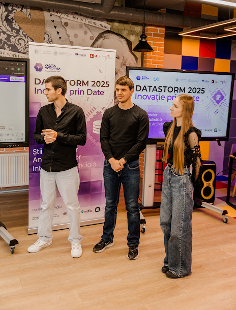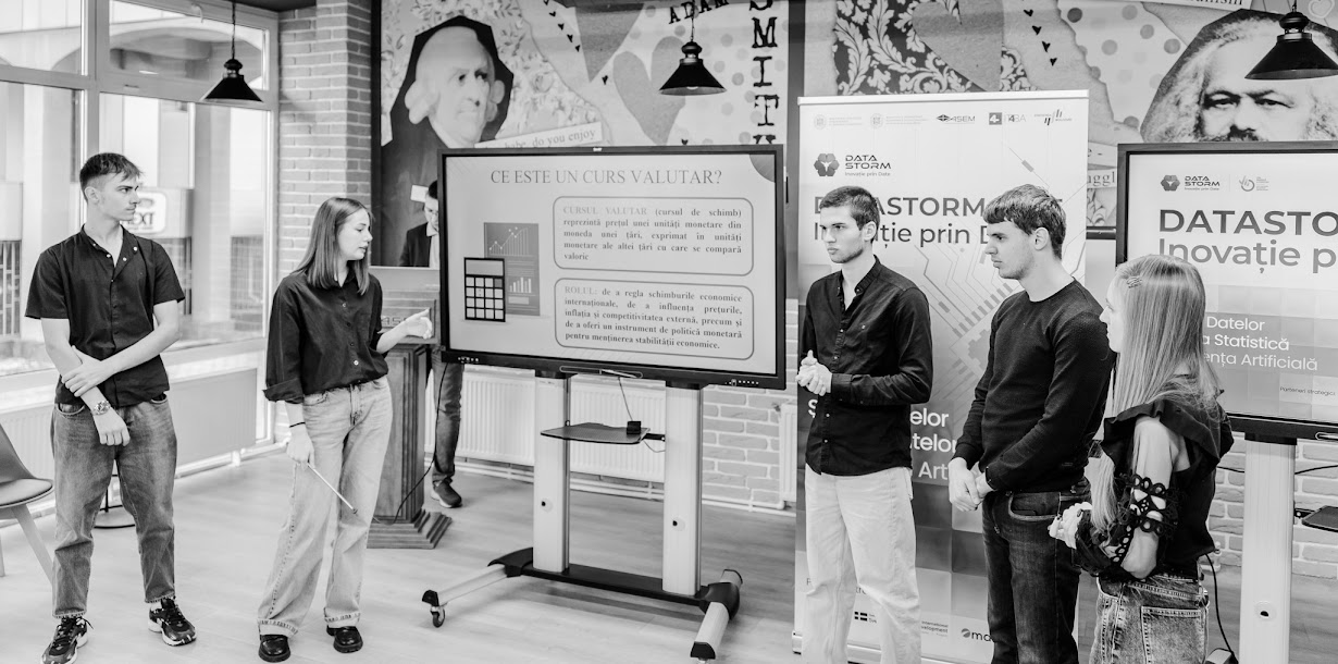 Pe 30 octombrie 2025, în cadrul evenimentului DATASTORM – Inovație prin date, s-a desfășurat concursul DATA Scientist Challenge, dedicat tinerilor pasionați de știința datelor, analiză avansată și inovație digitală. Evenimentul a avut loc în spațiul modern și interactiv Student Hub al Academiei de Studii Economice din Moldova (ASEM), oferind un cadru ideal pentru exprimarea creativității, colaborare interdisciplinară și schimb de idei între generații.