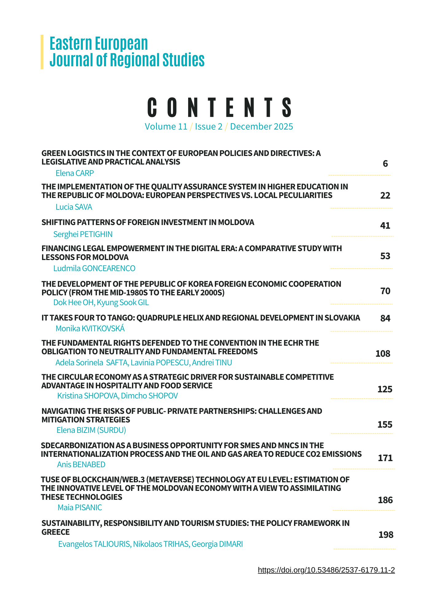 Boardul editorial al Eastern European Journal for Regional Studies anunță publicarea online a Volumului 11 | Numărul 2 (decembrie 2025). Accesați ediția aici https://csei.ase.md/journal/issue_112.html.