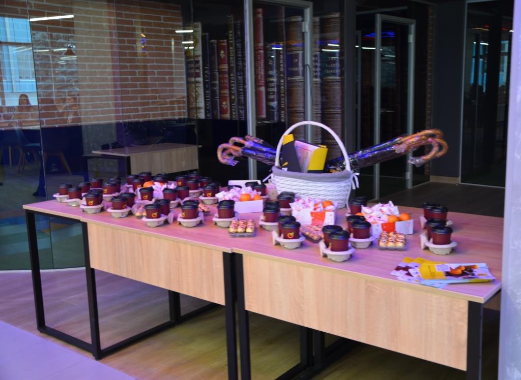 Decana Facultății Contabilitate, Maia BAJAN, dr., conf. univ., alături de reprezentantele EY – Daniela BALAN și Ina BACIU, într-o atmosferă neformală, perfect pentru discuții informale și schimb de idei, au felicitat studenții cu ocazia acestei sărbători, oferindu-le cafea și dulciuri.