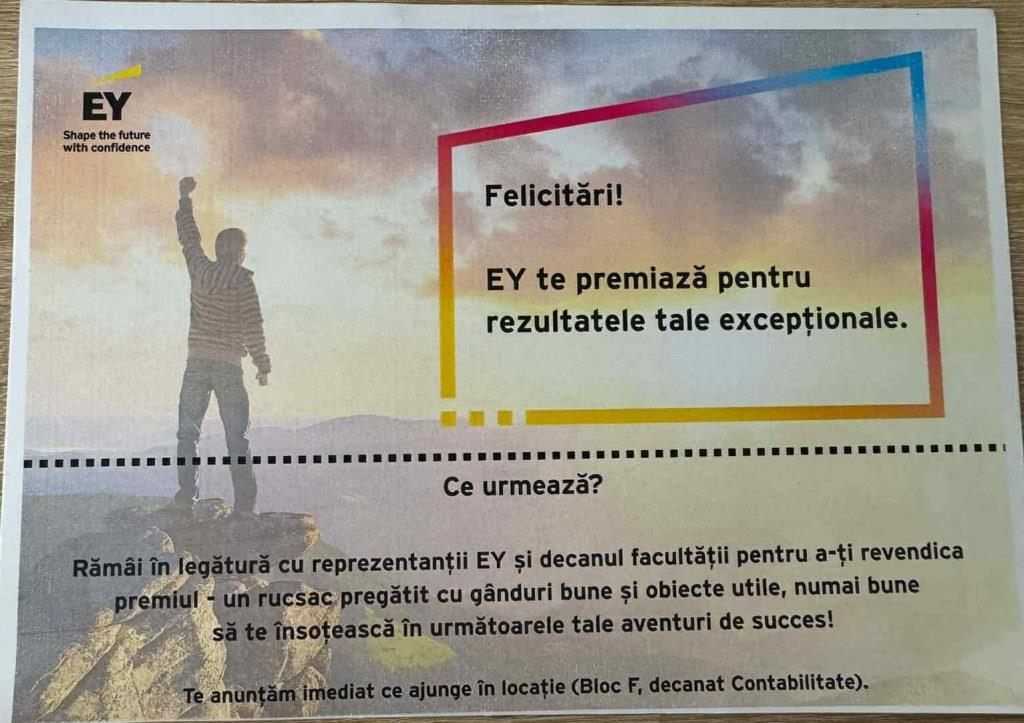 La inițiativa EY, cei 10 studenți ai Facultății Contabilitate care au participat la Concursul „Cel mai Bun Student al ASEM 2025” au fost premiați cu Certificate-cadou, ca apreciere pentru curajul, implicarea și ambiția lor.