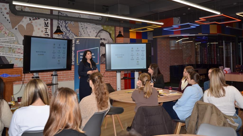 Prezentarea companiei EY, completată de discuții deschise despre mediul profesional și exemple din realitatea practică, le-a oferit studenților o perspectivă valoroasă asupra parcursului lor în domeniul contabil.