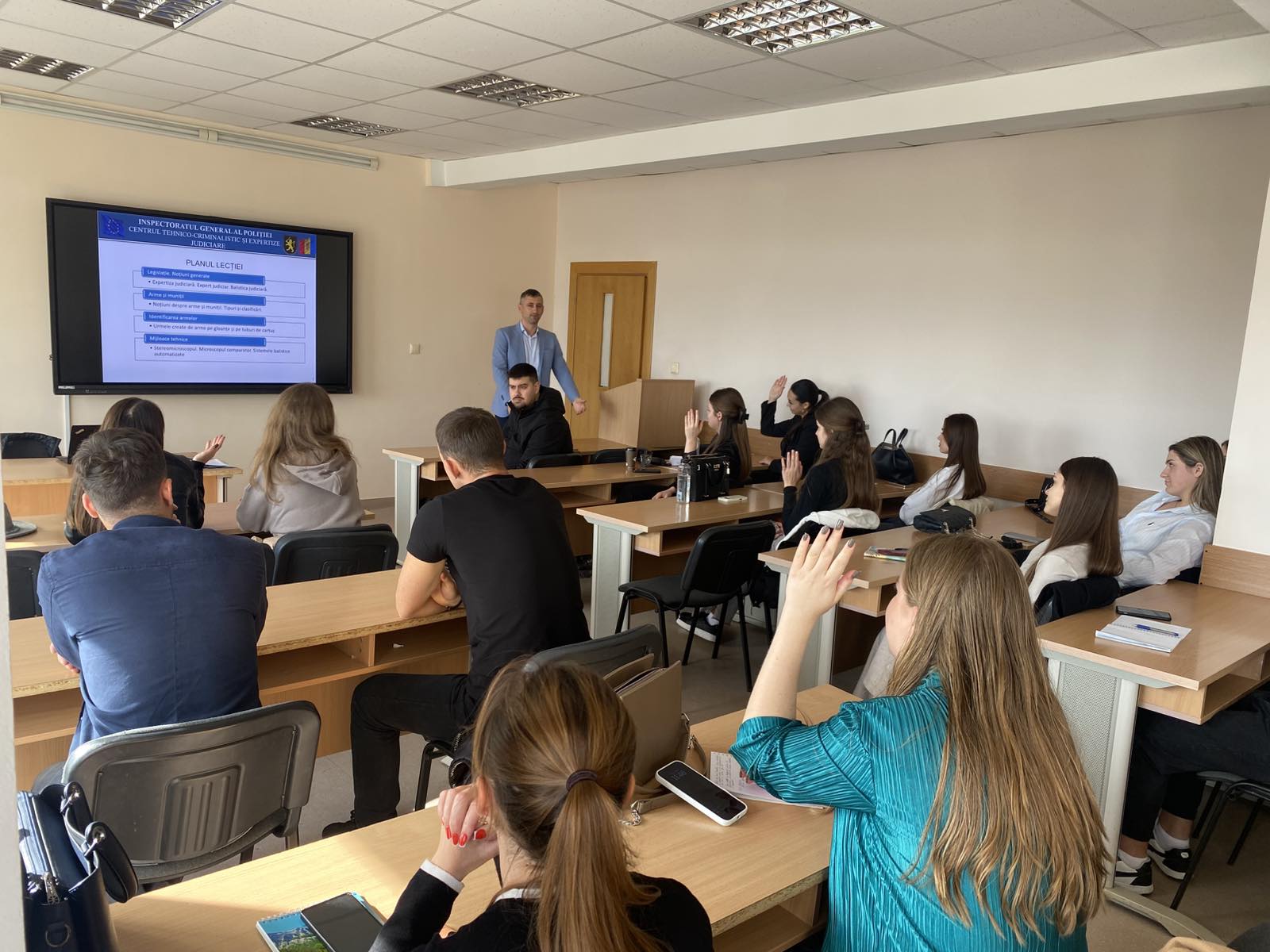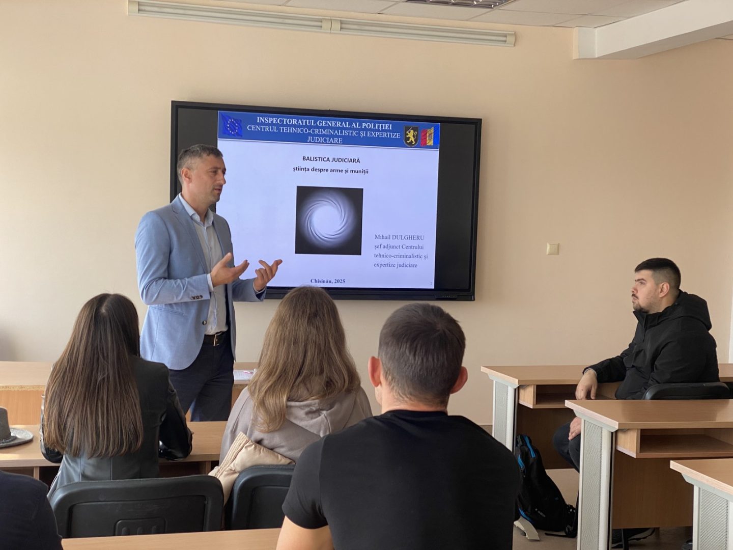 În data de 31 octombrie 2025, studenții anilor III și IV ai programului de studiu „Drept”, facultatea „Economie Generală și Drept”, au participat la o lecție publică, susținută de Mihai DULGHERU, șef adjunct al Centrului tehnico-criminalistic și expertize judiciare al Inspectoratului General de Poliție.
