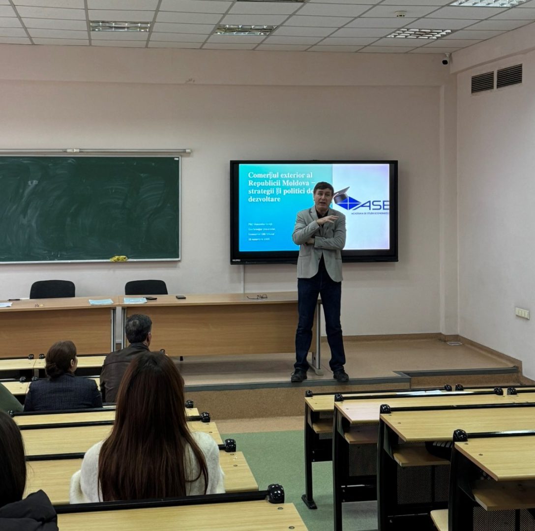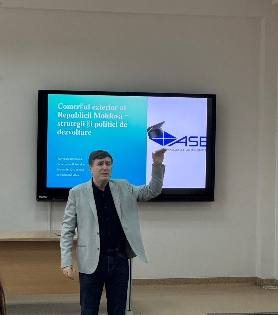 La 28 noiembrie 2025, studenții Academiei de Studii Economice din Moldova au avut ocazia să participe la o lecție publică, intitulată „Comerțul exterior al Republicii Moldova – strategii și politici de dezvoltare”. Prelegerea a fost susținută de Veaceslav IONIȚĂ, doctor în științe economice, conferențiar universitar și economist în cadrul IDIS „Viitorul”, cunoscut pentru analiza sa riguroasă a evoluțiilor economice naționale.