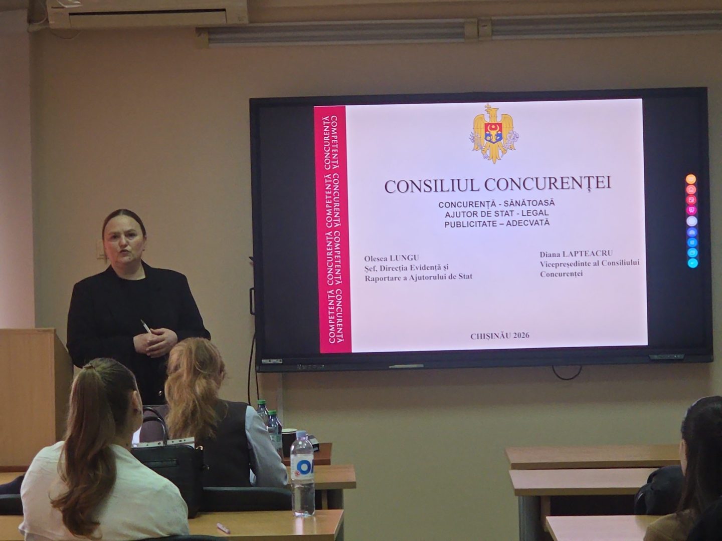 La data de 27 februarie 2026, în cadrul cursului Management Corporativ, destinat studenților anului III ai programului de studii „Business și Administrare”, a fost organizată o lecție publică cu participarea reprezentanților Consiliul Concurenței –  Diana LAPTEACRU, vicepreședinte și Olesea LUNGU, șef Direcția Evidență și Raportare a Ajutorului de Stat.