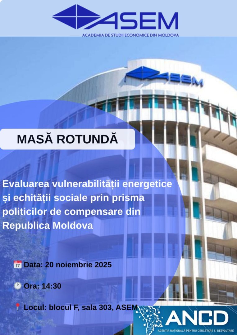 Evenimentul este organizat în cadrul proiectului de cercetare „Estimarea vulnerabilității energetice și impactul acesteia asupra nivelului de trai al populației din Republica Moldova” (Cifrul proiectului: 25.80012.0807.57SE), finanțat din bugetul de stat al Republicii Moldova, în cadrul concursului național de proiecte „Stimularea excelenței cercetărilor științifice 2025–2026”, organizat de Agenția Națională pentru Cercetare și Dezvoltare (ANCD).