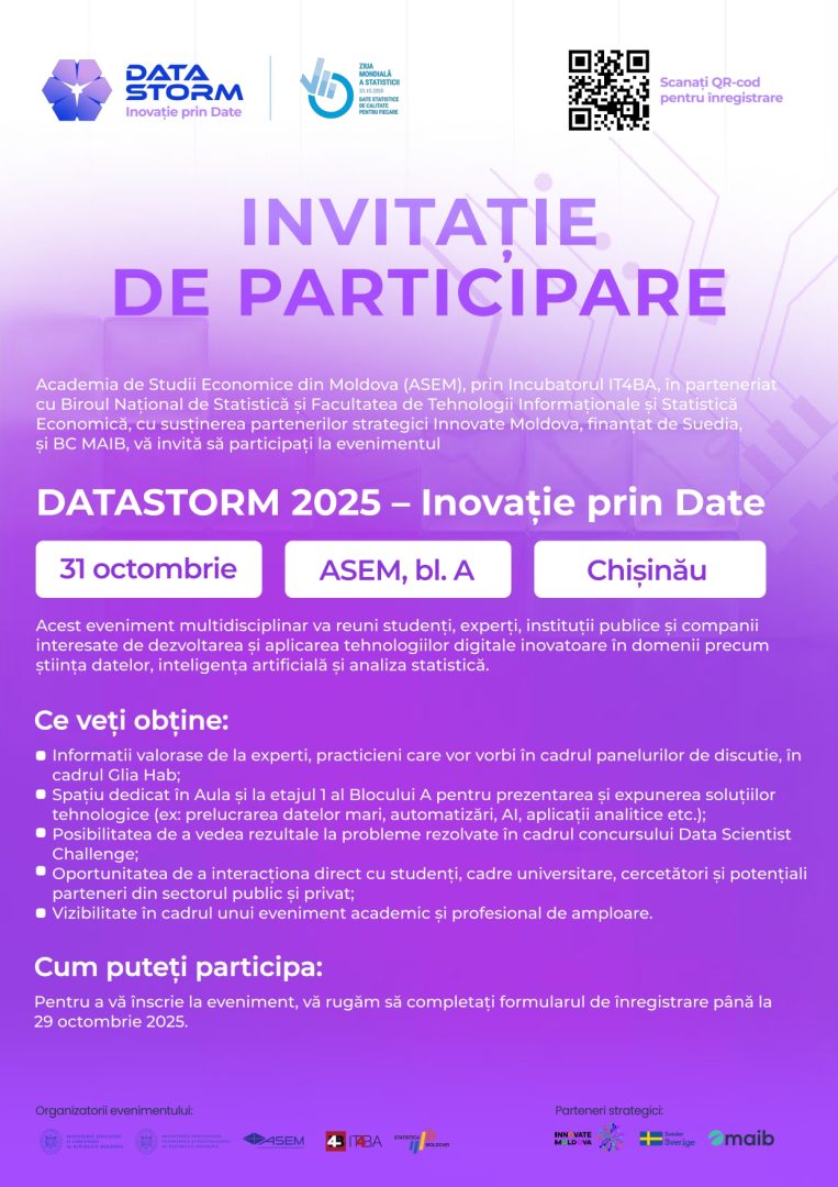 Academia de Studii Economice din Moldova (ASEM), prin Incubatorul Inovativ IT4BA, în parteneriat cu Biroul Național de Statistică și Facultatea de