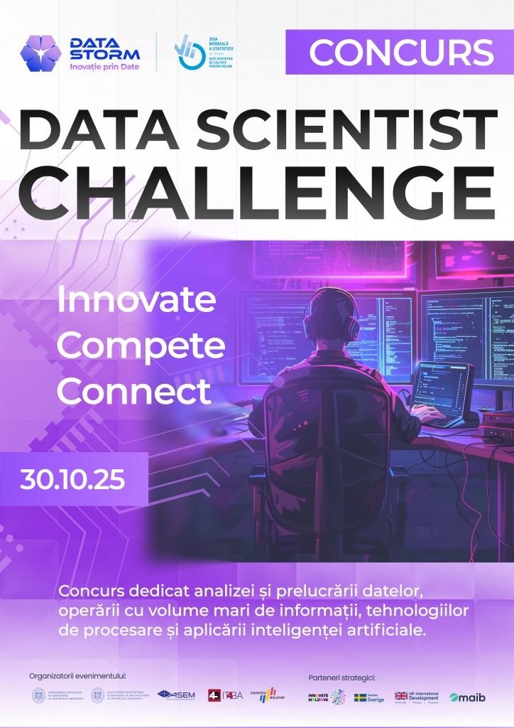 Academia de Studii Economice din Moldova (ASEM) vă invită să participați la finala concursului „Data Scientist Challenge”, care va avea loc pe 30 octombrie