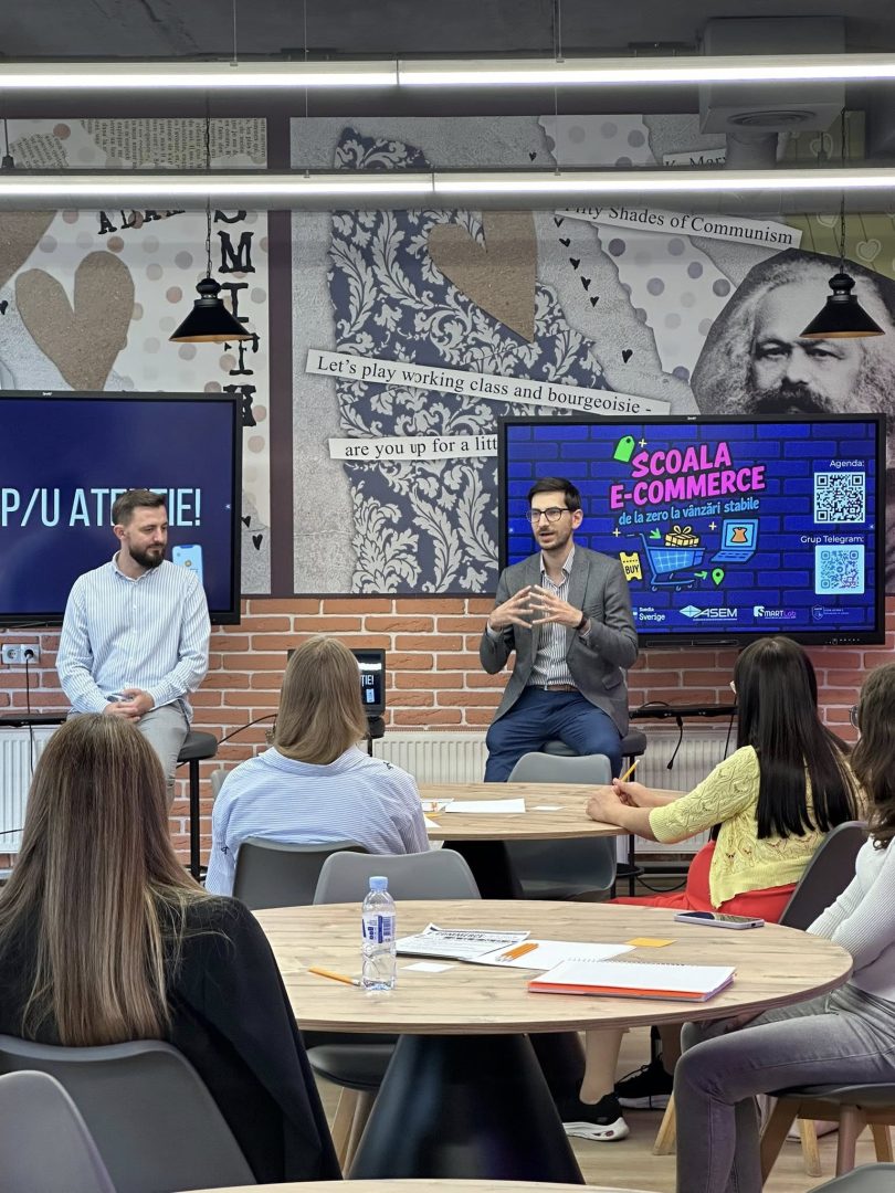 Programul a reunit 17 participanți – elevi ai Colegiului Național de Comerț, studenți ASEM și antreprenori aflați la început de drum, trainingurile fiind livrate de 15 traineri cu experiență directă în comerțul electronic și servicii conexe comerțului electronic.