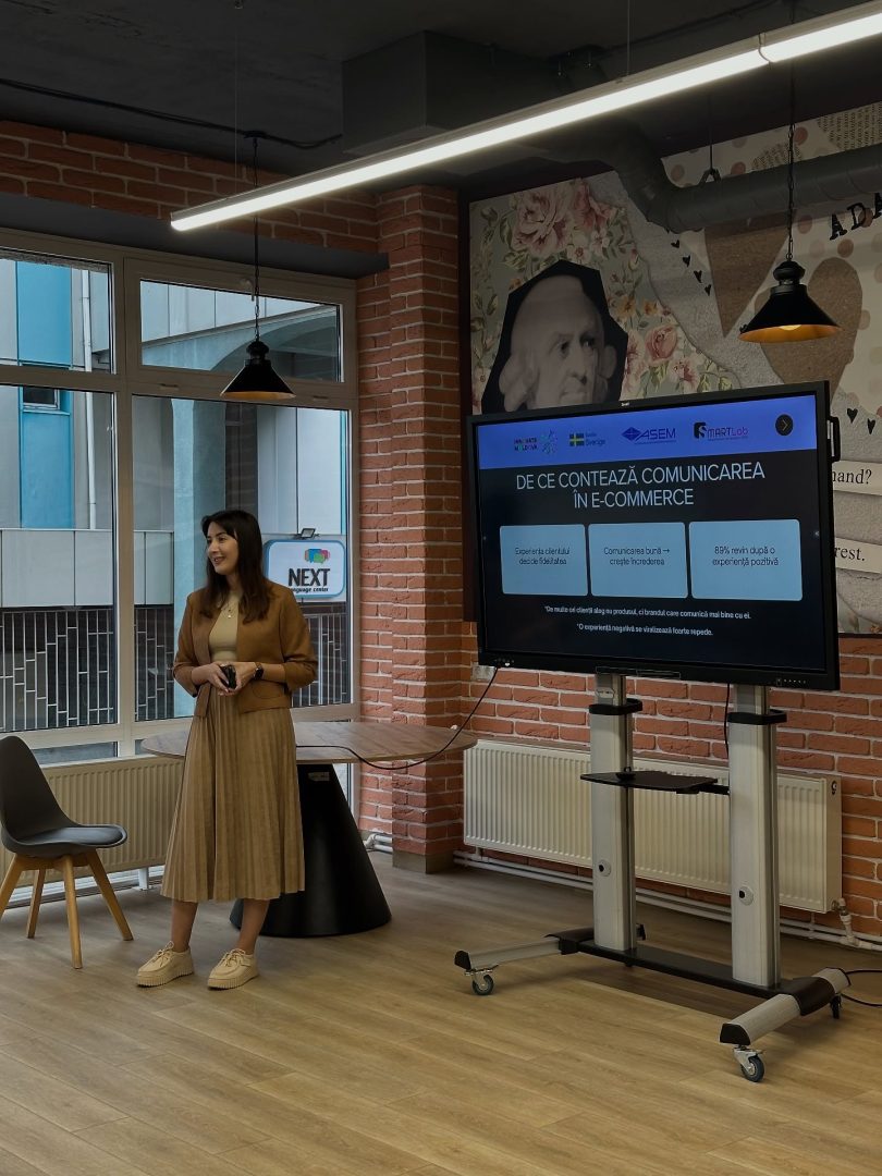 În perioada 15 septembrie – 13 octombrie 2025, în ASEM s-a desfășurat prima ediție a Școlii E-Commerce: de la zero la vânzări stabile, organizată de SMARTLab ASEM în parteneriat cu Clinica Juridică de Consultanță în Afaceri ASEM. Organizarea școlii a fost posibilă grație suportului financiar și logistic al organizației Innovate Moldova, partener strategic al evenimentului. Programul a fost inițiat și gestionat de către Tatiana Bucos, dr., conf. univ., departamentul Teorie și Politici Economice, director al centrului de Educație&Servicii pro-business SMARTLab ASEM.