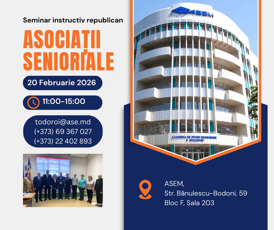 Pe 20 februarie 2026, Academia de Studii Economice din Moldova informează despre organizarea Seminarului Instructiv Republican „Asociații Seniorale”, inițiativă dedicată promovării și dezvoltării structurilor seniorale la nivel național.