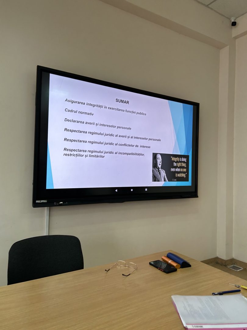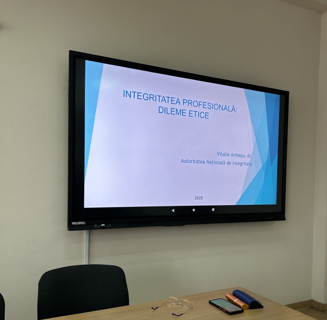 Sesiunea a fost susținută de domnul Vitalie ARMAȘU, doctor, consultant la ANI, care a abordat aspecte esențiale privind integritatea în mediul profesional, provocările etice cu care se confruntă tinerii specialiști și rolul valorilor morale în consolidarea unei cariere bazate pe responsabilitate și corectitudine.