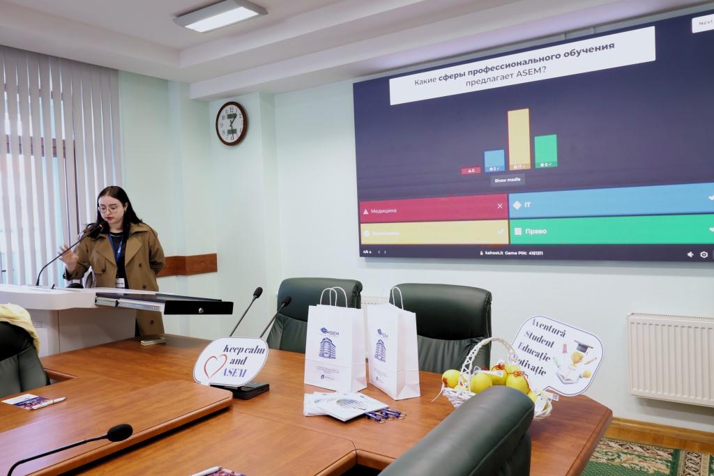 Elevii au participat la un moment interactiv și distractiv, unde au răspuns la întrebări despre ASEM în cadrul jocului Kahoot, realizat de Maria BURLAC. Elevii cu cele mai bune răspunsuri au fost răsplătiți cu premii.