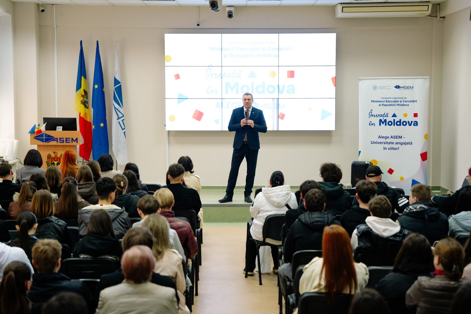 În cadrul Campaniei Naționale „Învață în Moldova”, inițiată de Ministerul Educației și Cercetării al Republicii Moldova, în parteneriat cu instituțiile de învățământ superior din țară, Academia de Studii Economice din Moldova a avut onoarea și bucuria de a primi vizita elevilor din diverse raioane ale țării, veniți să descopere oportunitățile educaționale și profesionale oferite de instituția noastră.